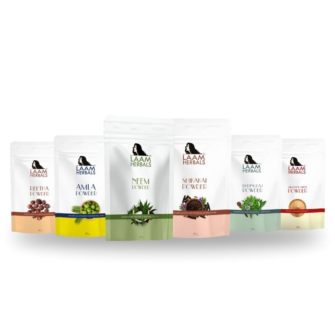 Laam Amla, Reetha, Shikakai, Bhringraj, Neem & Multani Mitti Powder | Results in One Wash | Long, Strong & Natural Hair (6X100 g)