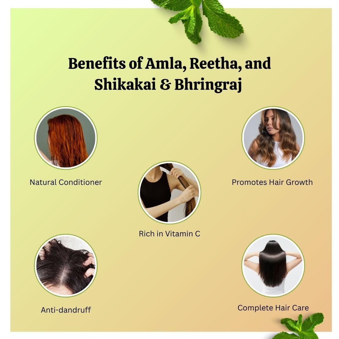 Amla Fruit Powder, Reetha Fruit Powder, Shikakai, Bhringraj Leaf Powder