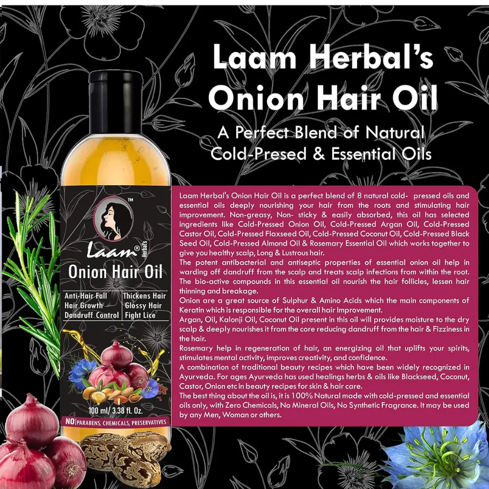 Laam manufacture ayurvedic oil for hair care just by simple herbs that contain great healing properties. The goodness of rosemary essential oil and 7 natural cold pressed oils also promotes growth and controls dandruff. A perfect blend of cold-pressed oils that also assist in nourishing hair and scalp and make hair healthy, thick, and shiny, also treating dry, brittle, frizzy, breakage prone hair more manageable and lustrous.