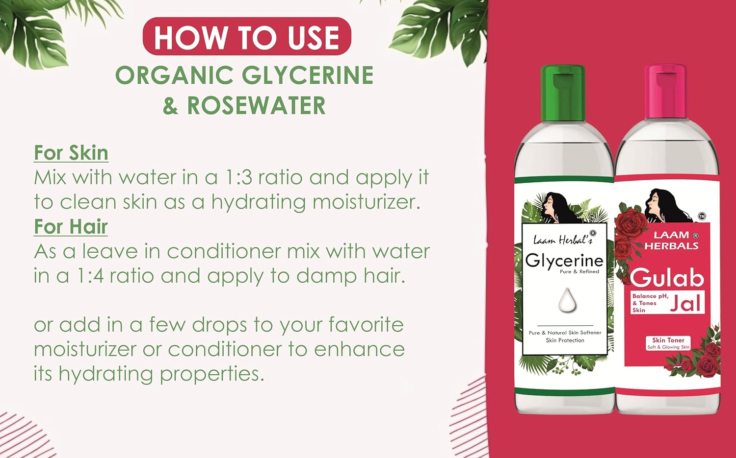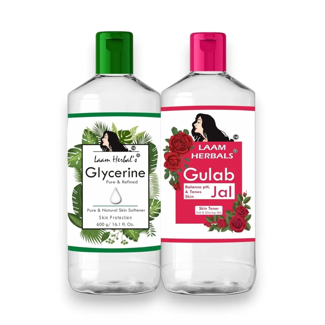 Laam Herbals Rose Water & Refined Glycerine | Steam Distilled | Pure & Natural | Skin Softner, Balance pH, Skin Toner (500 ml+600 g)